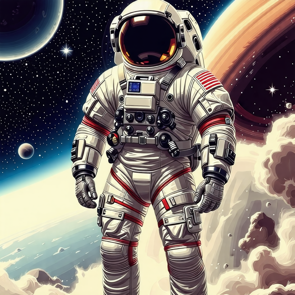 * 상의 및 하의: 우주인의 몸을 감싸 보호하며, 유연성과 활동성을 고려하여 설계됩니다.